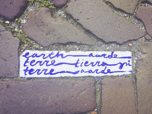 Under a sycamore tree a few days ago, across the water from a medieval bridge whose gothic turrets inspire faerie tale visions, I was transported by a familiar scent on the wind. I remembered what a sycamore in a California canyon told me as I visioned beneath her a couple months back. She said to me, “sit in stillness and let yourself be moved.” I felt that was the gentlest way I had ever heard transformation explained (leave it to the wisdom of trees!) As I continued my walk through the cobblestone streets, past giant hydrangeas, swans gliding in the canals, and cats playing, I found a ceramic sign embedded in the ground, breathing the word “earth,” up to me.