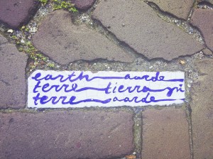 Under a sycamore tree a few days ago, across the water from a medieval bridge whose gothic turrets inspire faerie tale visions, I was transported by a familiar scent on the wind. I remembered what a sycamore in a California canyon told me as I visioned beneath her a couple months back. She said to me, “sit in stillness and let yourself be moved.” I felt that was the gentlest way I had ever heard transformation explained (leave it to the wisdom of trees!) As I continued my walk through the cobblestone streets, past giant hydrangeas, swans gliding in the canals, and cats playing, I found a ceramic sign embedded in the ground, breathing the word “earth,” up to me.