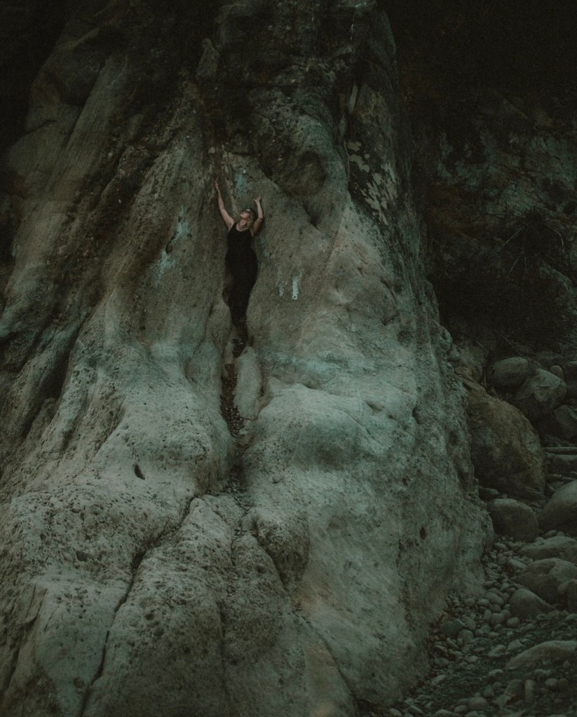 There are ravines at points along the path that narrow our passage and ask us to be deliberate about each step. It requires a pause where we gaze into the dizzying drop below, wobbling back to center as the “center” changes shape. Placing roots to sky, my perception of reality having shifted on its axis— there is no other choice but set my weight down and allow the field to empty.